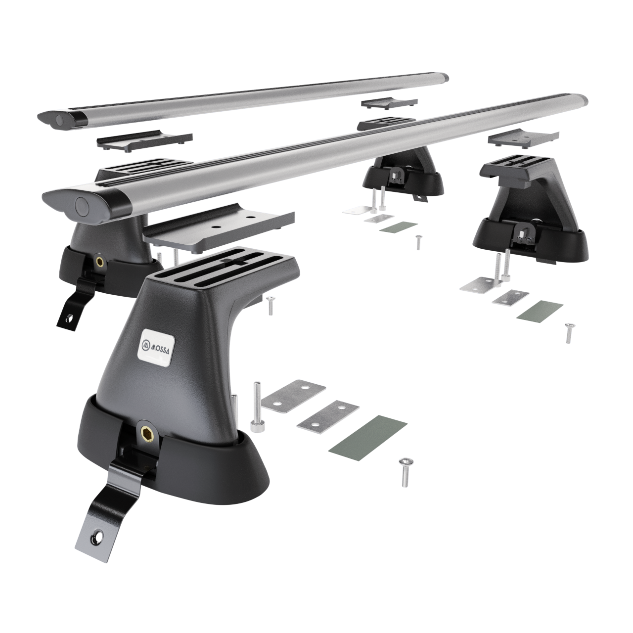 - Az alap tetőcsomagtartó 2 db tömör alumínium lécből és 4 db fogantyúból (ún. mancsból) áll, melyek az autótető típusához és az autó modelljéhez és évjáratához igazodnak.