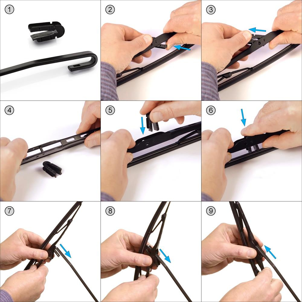 - adaptereket (az ablaktörlő lapát és az ablaktörlő kar összekapcsolásához használt elemek) M2 + M9 .