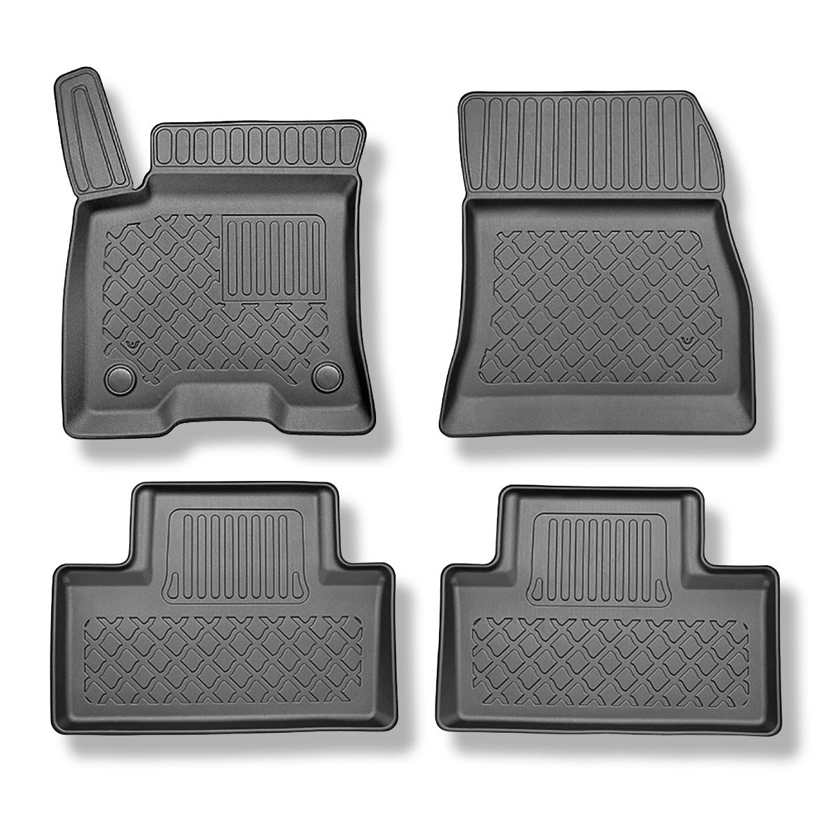 - A szőnyegek modern mintázatúak, felületük matt. Minden készlet méret alapján készül az adott autótípushoz és évjáratához, éppen ezért 100 % -osan illeszkedik a jármű padlójához. A készlet tartalmaz rögzítőket is, amennyiben ez az adott gépjárműtípushoz szükséges.