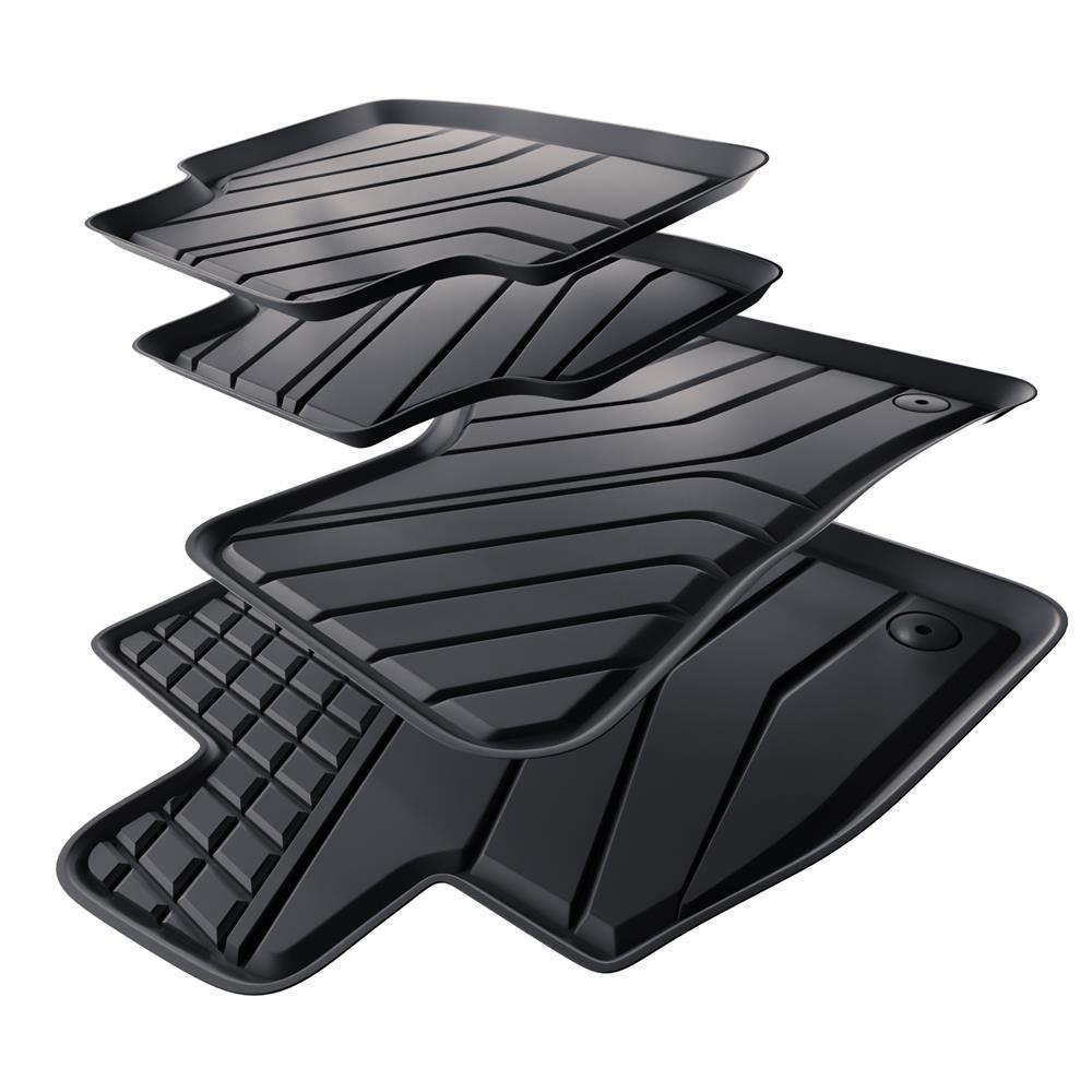 - A szőnyegek modern mintázatúak, felületük matt. Minden készlet méret alapján készül az adott autótípushoz és évjáratához, éppen ezért 100 % -osan illeszkedik a jármű padlójához. A készlet tartalmaz rögzítőket is, amennyiben ez az adott gépjárműtípushoz szükséges.