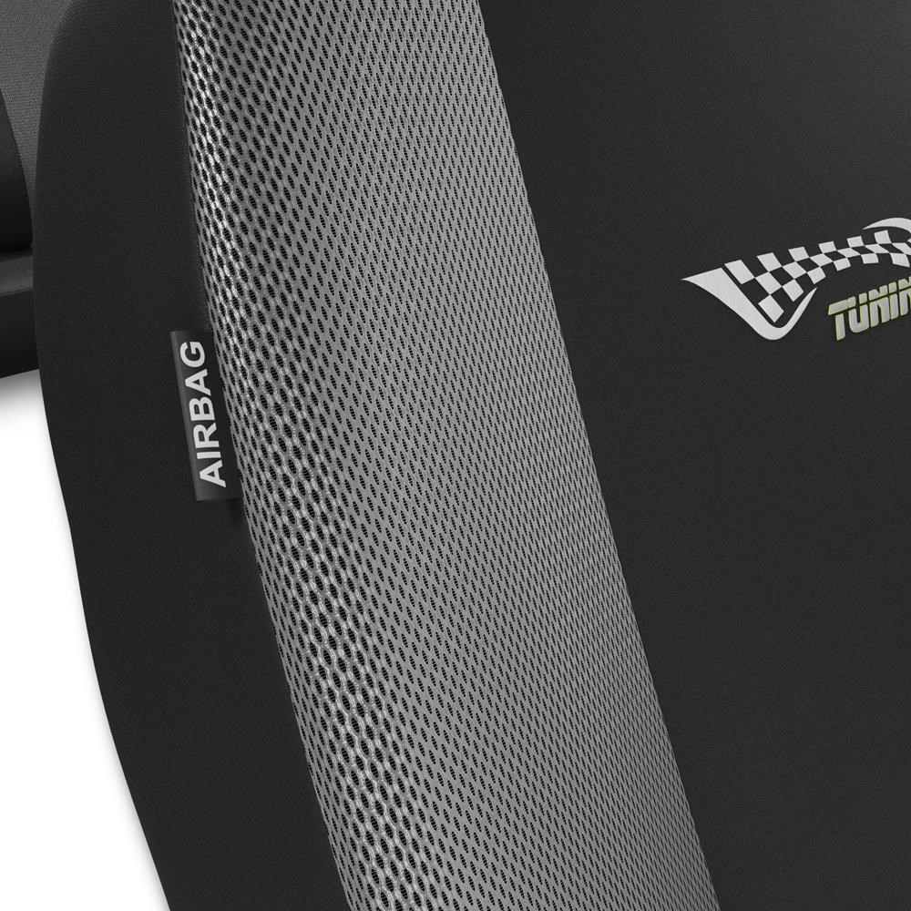 - A huzatok a teljes üléseket lefedik, és a tanúsítvánnyal rendelkező AIRBAG varrásnak köszönhetően nem akadályozzák a légzsákok működését.